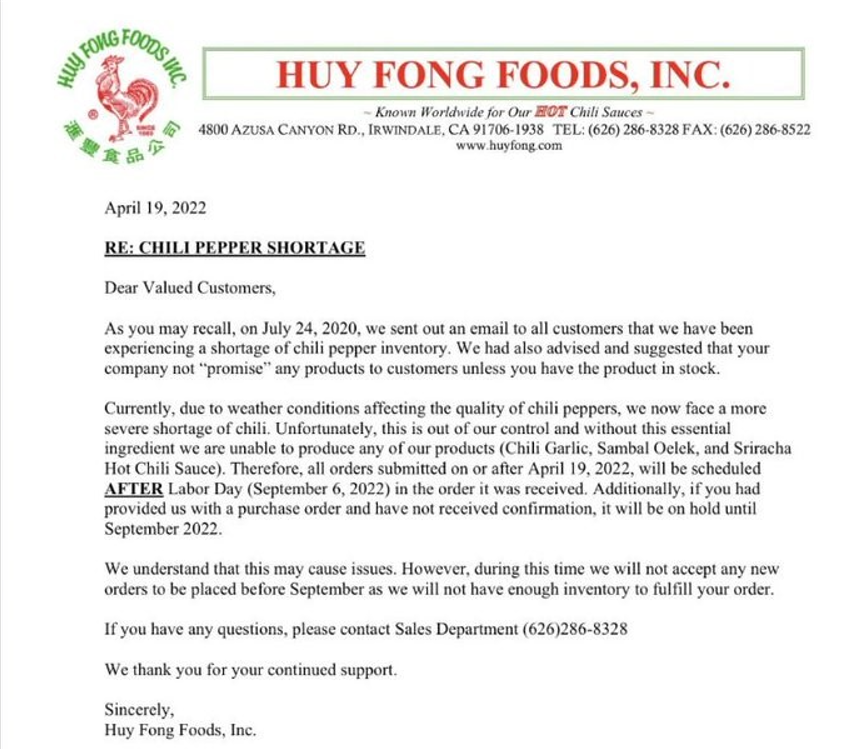 Mild sauce — Huy Fong Foods is warning of a sriracha shortage and it has nothing to do with this guy drinking 3 pounds of it. The condiment company has curtailed all orders submitted after April 19 and pushed them to after Labor Day. Why? Weather has led to a severe chili pepper shortage. Looking for a substitute (I know, there isn’t one), Trader Joe’s Chili Pepper Sauce has done well by me. Want to learn more about sriracha? Check out this documentary.