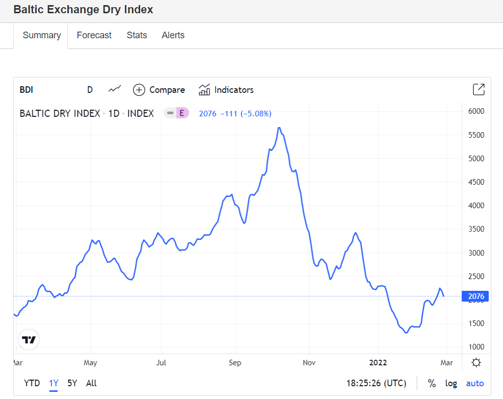 After the conflict began in Ukraine the index pulled back and may level off in the days or weeks ahead before resuming its rise. Or if the conflict rages on and creates further disruption in the global economy those rates may start to fall again. This will be something to watch in the coming weeks as any change in the trend is likely to have a corresponding effect on the share price of dry bulk shippers.