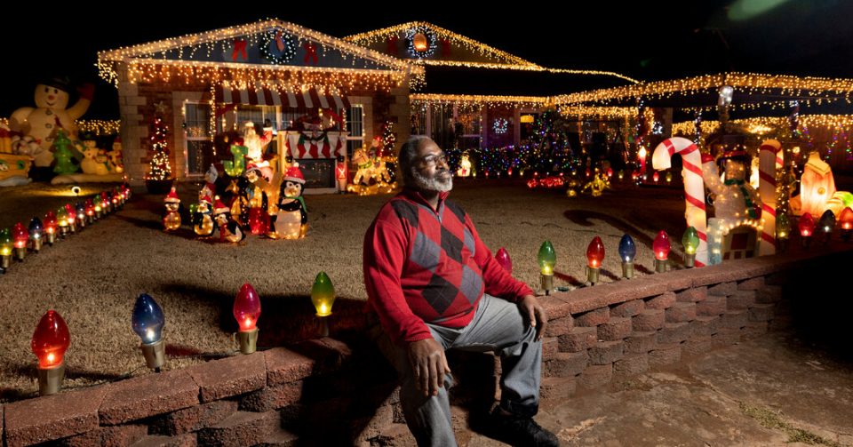 Her display, which she begins planning in March, has an animal theme this year, with an illuminated giraffe, flamingo, lion, owl and donkey. There is also a 40-pound glowing snowflake on her roof. On the lawn, a 10-foot “mega tree” composed of pixel lights stands next to a seven-foot tree that flickers and flashes to the beat of songs like “Let It Go,” from the Disney film “Frozen,” during a 30-minute show.