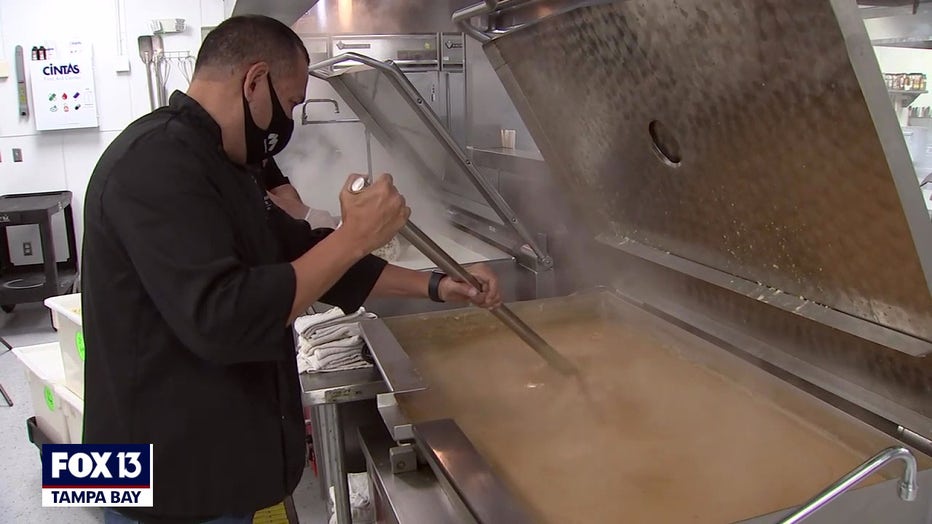 Volunteers prepared meals from the Metropolitan Ministries Kitchen in Tampa from 4 a.m. until 9 a.m. before the efforts shifted to distribution at sites across Tampa Bay.