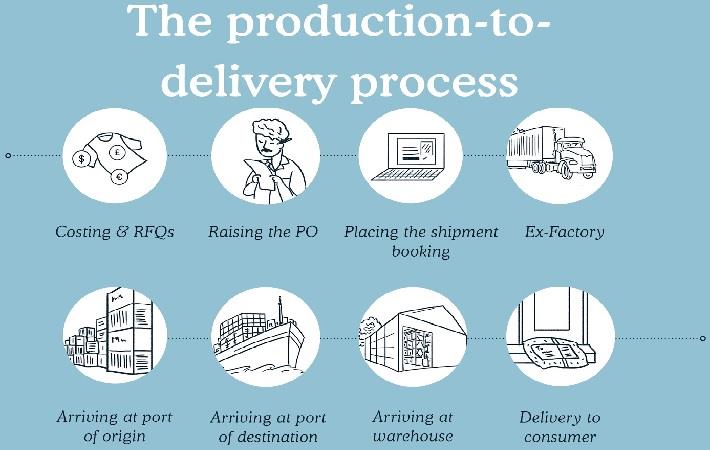 To help brands navigate the process, the guide includes a helpful step-by-step infographic of the production-to-delivery process, as well as explains roles and responsibilities and the most commonly used incoterms (rules that determine the terms for the international sale of goods).