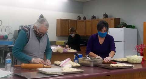 Jeannine Colstrom, Dee Davenport and Jan Ogleby filling up the dough with deliciousness.