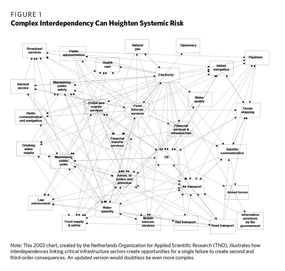 Computer networks and the operational and human systems that interface with them are increasingly complex, which “ensures hidden levels of mutual dependence.”38 The internet’s shifting web of technical, contractual, and financial linkages prevents organizations from fully understanding which system components support which core functions for which organizations.39 Single points of failure can easily escape scrutiny.