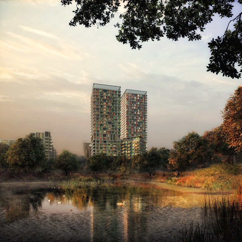 NO6 East Village alongside in Stratford, London, will provide 524 apartments in all, the site’s towers being of 25 and 30 stories respectively. Completion of the project is due by June 2021. Viewed from the ground, the quality of the structures seems exceptional.