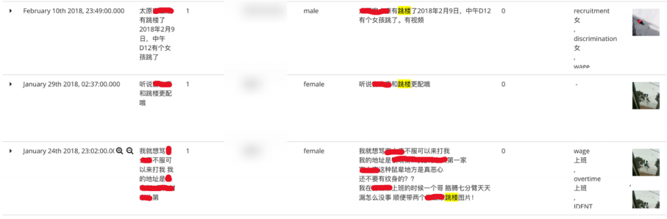 Brehm refers to this as “online solidarity” – the quiet resistance of factory workers uploading photos of their cramped living conditions, 30-minute lines to get lunch, or documents showing illegal amounts of overtime. Social@risk scours not only social media sites, but also websites like online complaint forums and message boards for work sites of interest, such as forums for Foxconn factories.
