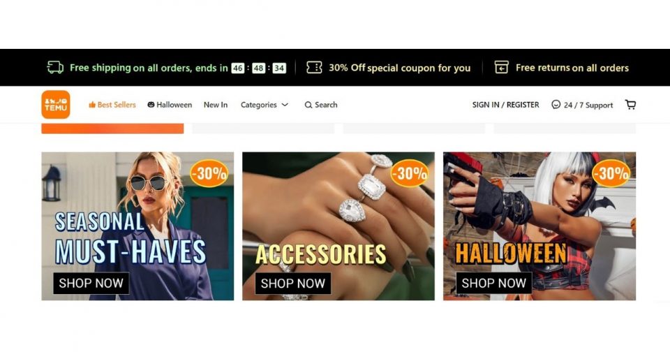 Launched in September, Temu features products in 14 major categories, including home and garden, women’s clothing, jewelry and accessories, beauty and health and electronics.
