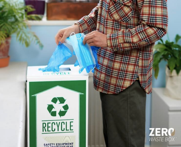 A variety of different Boxes are available, including: Disposable Gloves and Face Masks Zero Waste Box, Disposable Face Masks Zero Waste Box, Disposable Gloves Zero Waste Box and Safety Equipment and a Protective Gear Zero Waste Box.