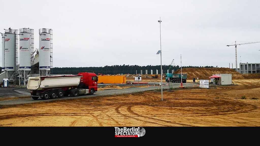 On a rainy Monday in early August, yesterday, the Freienbrink industrial park was already being dominated by Tesla. On the ‘L38’, a rural road that connects the ‘A10’ Autobahn to the Spreetal settlement, countless huge trucks keep on heading to the giant Tesla construction site. There is one every few minutes. And yes, those trucks are being powered by Diesel engines. They look like they are moving sand out of there.