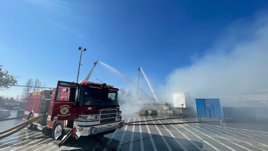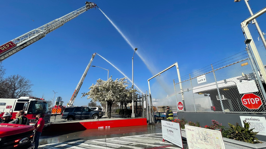 Firefighters in California responded to a 2-alarm fire at a Tesla factory on Friday. (Fremont Fire Department)