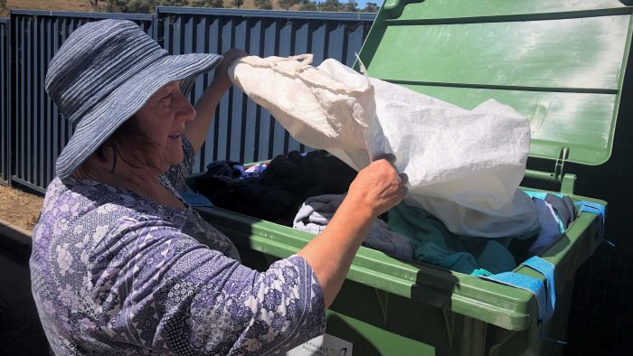 Moira Spinnaza said the bins were an opportunity for unsaleable clothes from the community op shop to find a new life in another way.(ABC Central West: Mollie Gorman)