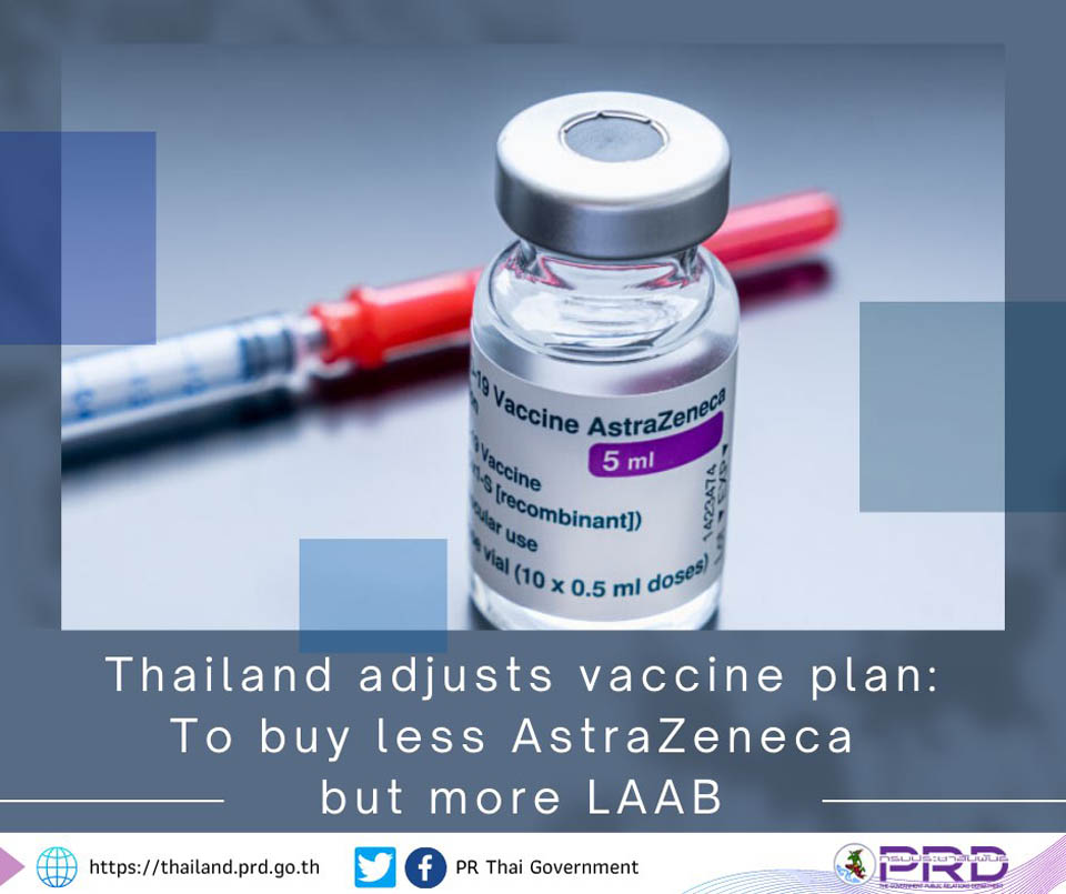 In order to adjust its plan in line with the present situation, the Department of Disease Control decided to reduce its AstraZeneca vaccine procurement from 60 million doses to 35.4 million doses, with a budget of 11 billion baht.