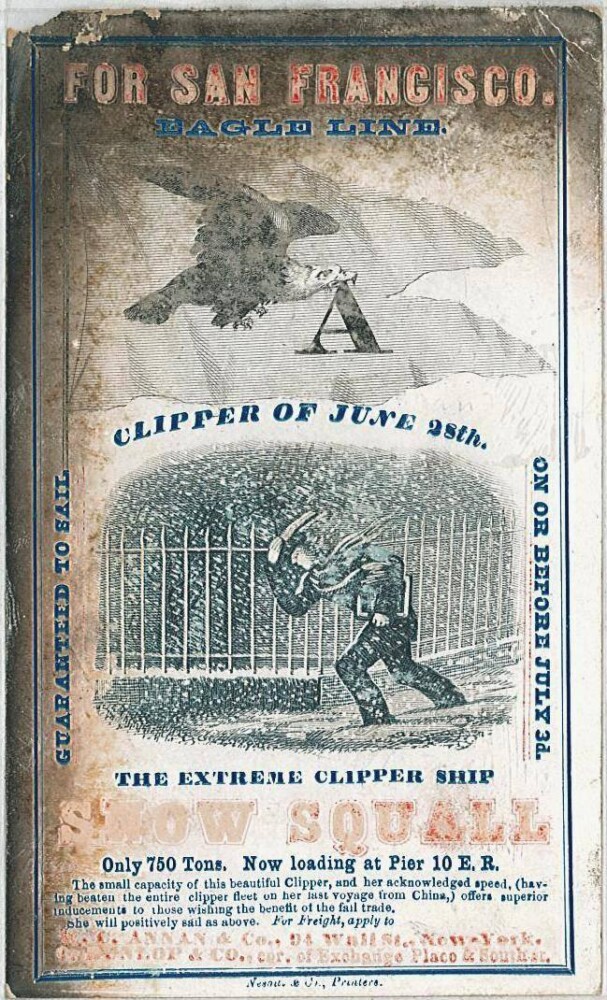 The clipper then sat idle until Green sent it to Australia by Cape of Good Hope with general cargo and six paying passengers. They arrived in Melbourne Feb. 21, 1855. On to Jakarta, then Hong Kong and finally Shanghai, where they loaded a cargo of tea for New York. Snow Squall arrived there early February 1856.