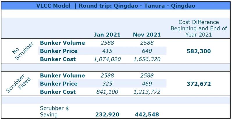 Compared to the turmoil of 2020, this year has been relatively straightforward for bunker prices – they have only really moved one way – up. January 2021 saw prices for VLSFO in Singapore start at around US$415 per MT and reach US$640 by the end of November, representing gains of more than 50% before falling to US$600 per MT on the back of Omicron-fuelled fears of a global economic slowdown. Of more interest however has been the spread between high and low sulphur grades of fuel oil as the world has attempted to return to normal after the turbulence of 2020. The year started with low sulphur grades attracting a premium of less than US$100 per MT, before increasing to US$120 by the summer and then widening to almost US$200 by the beginning of December. In real terms, this means that the voyage costs of shipping companies have increased by 50% in 2021 and scrubber-fitted vessels have enjoyed more cost benefits as the year has progressed.