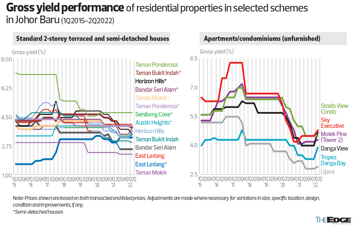 In terms of yield, 2-storey terraced houses in Horizon Hill and 2-storey semi-detached houses in Sri Alam improved by about 10%. “The yield for most high-rise residences also increased as a result of improved rents.”