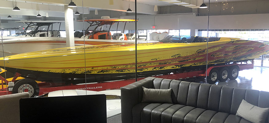 They acquired the former giant industrial-space on West Sunrise Boulevard, gutted it, and created a two-story showroom capable of holding big performance boats in two separate areas. One is for display, the other for storage. And there’s still plenty of space left over, at least in the storage area, for vehicles from sportscars to Freightliners.