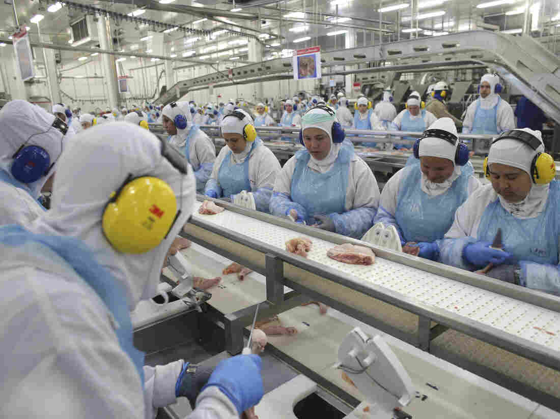 Workers prep poultry at the meatpacking company JBS in the Brazilian state of Paraná in 2017. A recent ransomware attack against JBS is raising concerns about cybersecurity at food companies.