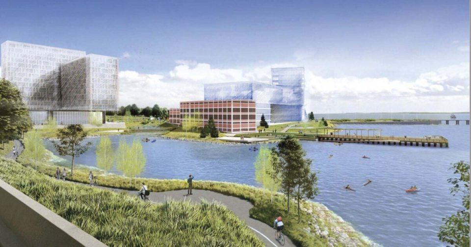 Beyond the educational buildings, the company is proposing building office and lab space for institutional partners, housing for students, faculty and employees, a hotel for visitors, retail and dining spaces, and publicly accessible open green space on the water. In total, the nonprofit anticipates building up to nearly 1.8 million square feet of space in at least six new buildings as part of three-phase plan over the next two decades.