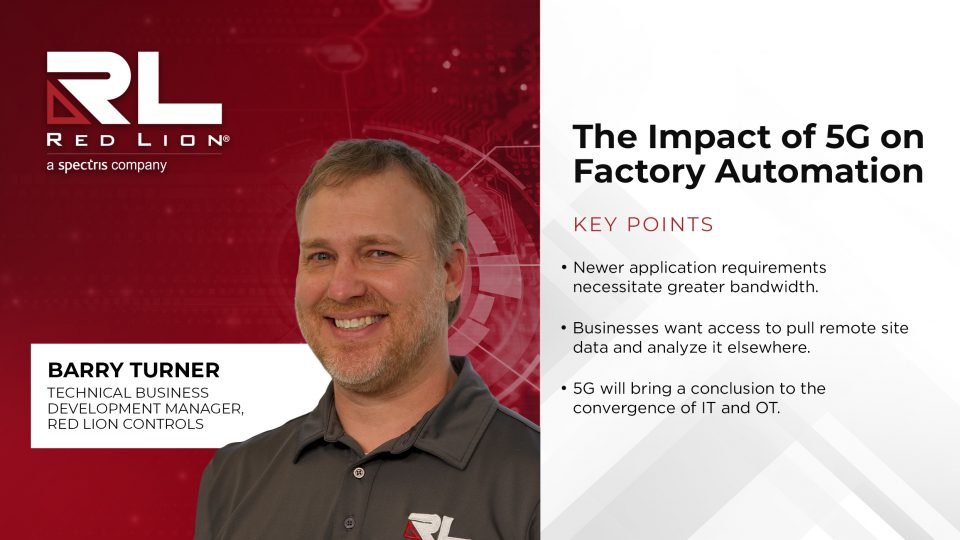 Barry Turner, Technical Business Development Manager at Red Lion Controls, walked Tyler Kern through the current state of 5G and the future advantages of factory automation as adoption progresses.
