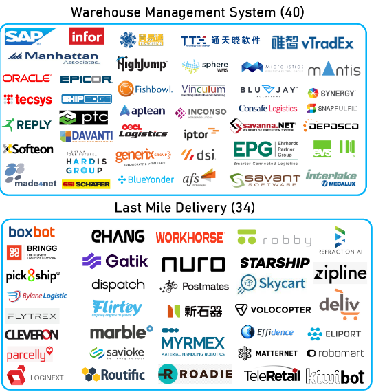 There are a number of interesting companies in the automation market ecosystem, of which I’ve looked to provide a snapshot at the end of this article by highlighting 400 key players broken down into specific technology groups. Robotics companies are a hot area that has seen some recent deals, including Shopify [SHOP] buying 6 River Systems for $450m and Teradyne [TER] buying AutoGuide for $165m — both companies work with collaborative mobile robots and automated guided vehicles.