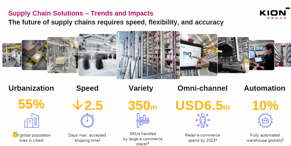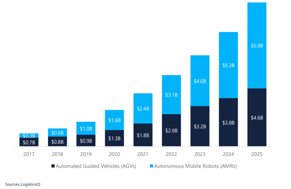 Mordor Intelligence, meanwhile, estimates the logistics automation market to be worth about $55.15bn in 2019, but expects it to reach $107bn by 2025, a 12% CAGR.  Further adoption is also being driven by high warehouse rent prices, a shortage of skilled workers and micro-fulfilment centres. Furthermore, an environment with record low-interest rates and elevated capacity utilisation as well as aging equipment sets the stage for a strong investment cycle in automation to replace an ageing fleet.