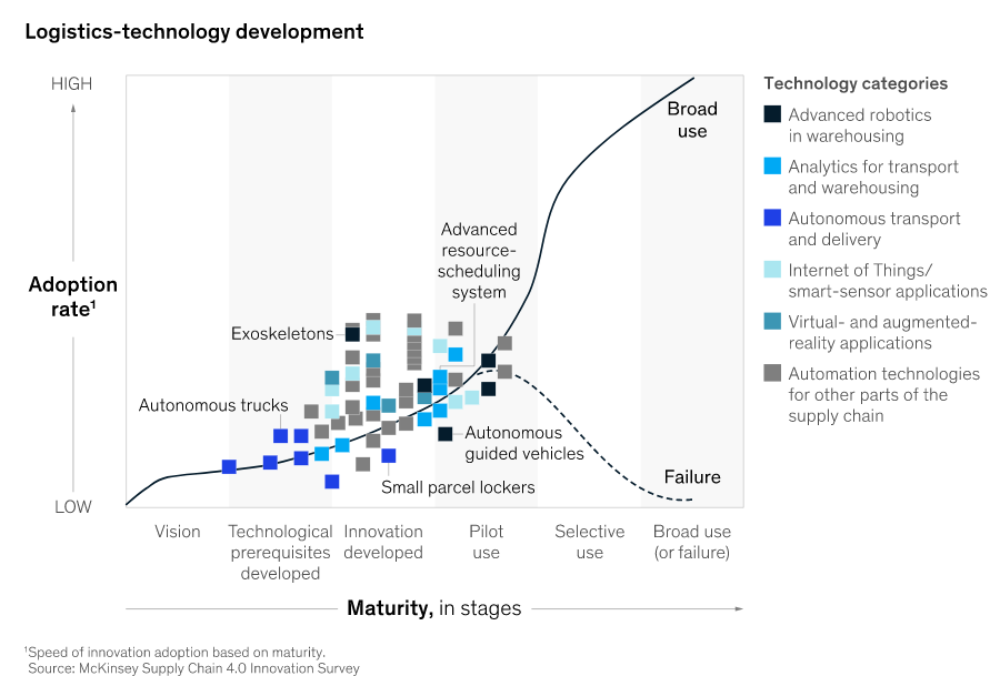 Automation within logistics benefits both businesses and customers through cost efficiencies and faster distribution. Other advantages include fewer errors and increased warehouse safety. Many companies refer to this overall movement as ‘Industry 4.0’, which includes usage of cloud computing and blockchain technology for big data and analytics insights — essentially, it marks the digital transformation of the industrial sector.
