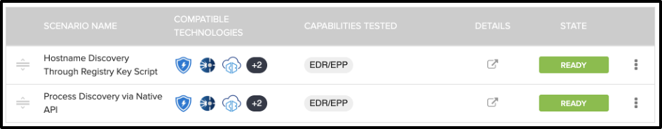 The next test is for the discovery phase of the attack. The “hostname discovery through registry key script” scenario performs a hostname discovery by querying the Windows Registry. This is a common technique used by malware to obtain the local hostname of the victim host. The “Process Discovery via Native API” scenario uses Win32 API calls to query CreateToolhelp32Snapshot, Process32FirstW and Process32NextW. These API’s are common to malware due to the way in which malware often iterates through the running processes on a victim host, usually in order to evade certain security tools by killing any found processes. These same API’s were observed in the recent Kaseya REvil attack.
