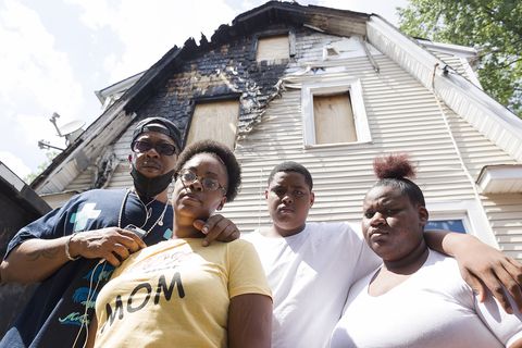Daryl Graham, Shani Harrell and their children, Kamar and Kayla Graham, visit their old home on Bloy Street in Hillside that was destroyed by fire. Steve Hockstein | For NJ Advance Media