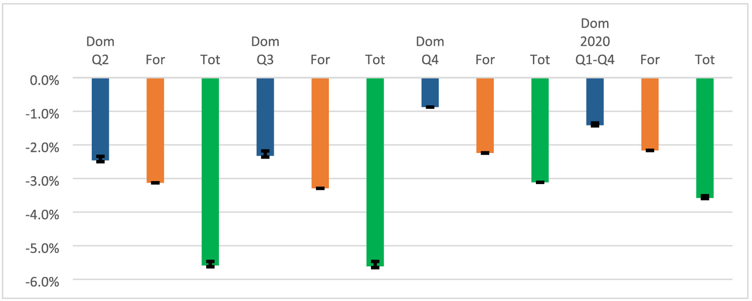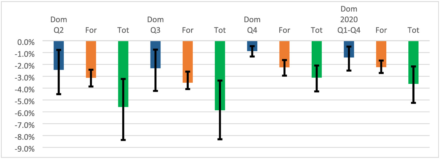 Quarters 2, 3, and 4 | Impact due to emergency/distancing rules compared with pre-crisis | |||