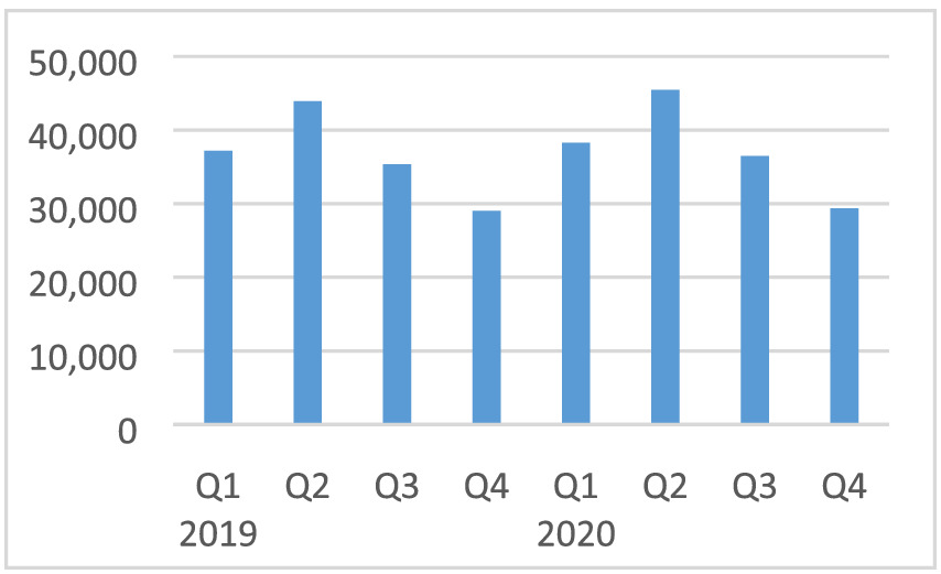 Harvesting and most export of tobacco happen in Q3 and Q4. Therefore, comparing Q2 with Q1 or the previous year does not really show the impact of COVID-19. Nevertheless, the annual change shows, that tobacco export is down by 78% in Q2-2020 compared with Q2-2019 and 64% down compared with Q2-2018 (Figure A12). We still assumed only a mild impact (−1% to −10%) in Q2 for tobacco due to the fact that Q2 is not a harvest period.