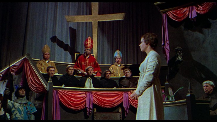 The striking image of religious zealots sitting in front of a large, cartoonishly looming cross accompanies Joan’s ultimate condemnation. She sings, professing that she’s heard God’s voice, finding peace in light of the darkness. The Phantom watches from the shadows as a tear forms and falls down his cheek. Perhaps he too hears a voice in his long lost music now fully realized, different even from the one belonging to the female vessel he himself helped prepare to share it.