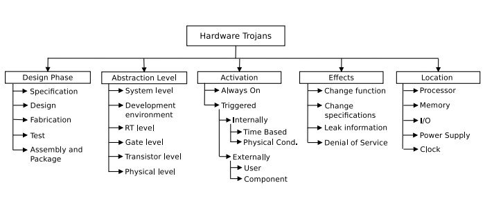 Taxonomy of hardware trojans according to Rajendran et al. Image used courtesy of the Australian Government Department of Defence