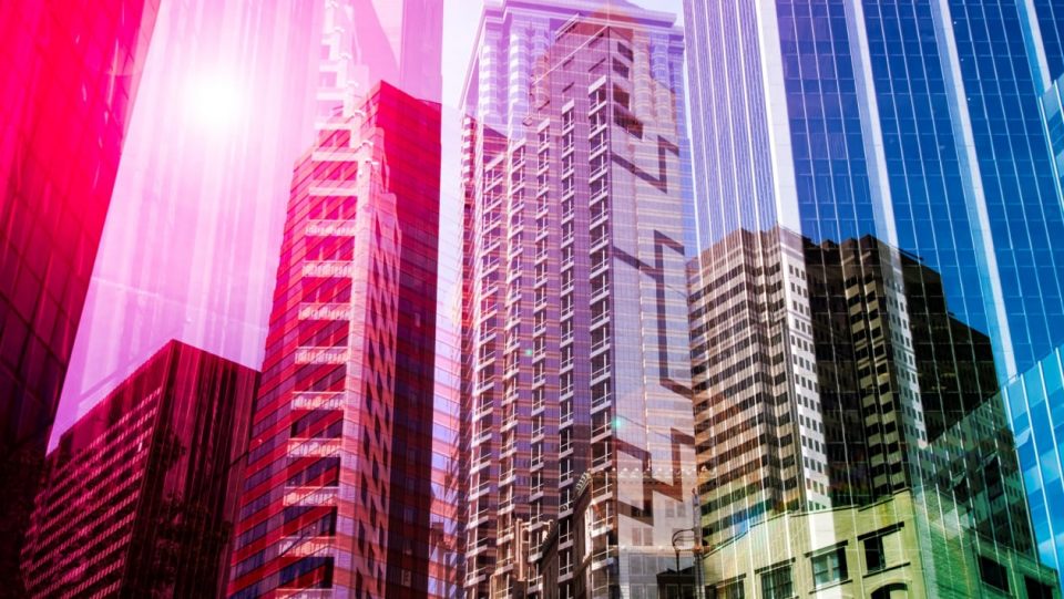 A glass building with the IBM logo displayed on the window
