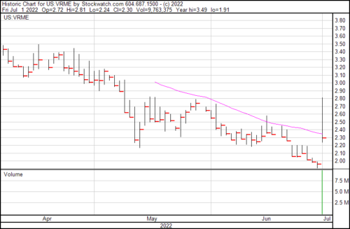 VerifyMe closed at $2.30.