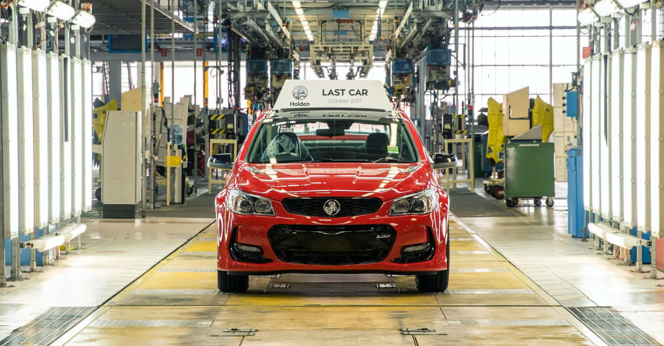 A red Holden Commodore SSV Redline with a black roof had a “Last Car” sign on it for the final production line ceremony on 20 October 2017.