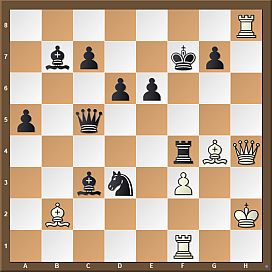 27.Qh2? A bigger failure. Both 27.Qg6; and 27.Ne2 were more convincing. 27…Rxg4+ 28.fxg4 Qg5 29.Nf4 Qxg4+ 30.Kh2+–