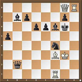 Although Black has collected 3 pawns for the piece, they are still harmless as most of them are annoyed by other black units. On the other hand, White’s only problem is the h1–rook, which he can bring soon via h3.