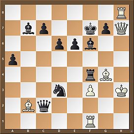 Instantly 29.Qg3 was accurate. 29…Rf7! 30.f4!! The key move, which was assumably missed by the four times Soviet champion. (30.Ba1 e5 is already not that easy despite the extra rook.) 30…Qc5+ 31.Kh2 Nxb2 32.Ne2 Nc4! (32…Bd5 33.Qh3 Kf8 34.Rh8+ Ke7 35.Qh4+ finishes it off quickly.) 33.Bxe6 Nd2 34.Rc1 Qxc1 35.Rh8+!! Kxh8 36.Qh3+ Kg8 37.Nxc1 Nf3+ 38.Kg3 Nd4! (38…Be1+ 39.Kg4+–) 39.Bxf7+ Kxf7 40.Qd7+ Kf6 41.Qd8+ (41.Qxc7 Nf5+ 42.Kh3 Bd5 43.Nd3 Be6 and we arrived to another rare ending, where Black has two light pieces and two pawns against the queen. Most likely it will be a draw.) 41…Ke6 42.Qxc7 Nf5+ 43.Kg4 Be4 44.Nb3 d5 45.Nxa5 Bxa5 46.Qxa5 g6! 47.Kg5 Nd6 Obviously it was simply impossible for anyone to foresee such details that long ahead! It seems the bishop and the knight together with the passer can stand the mud against the queen.