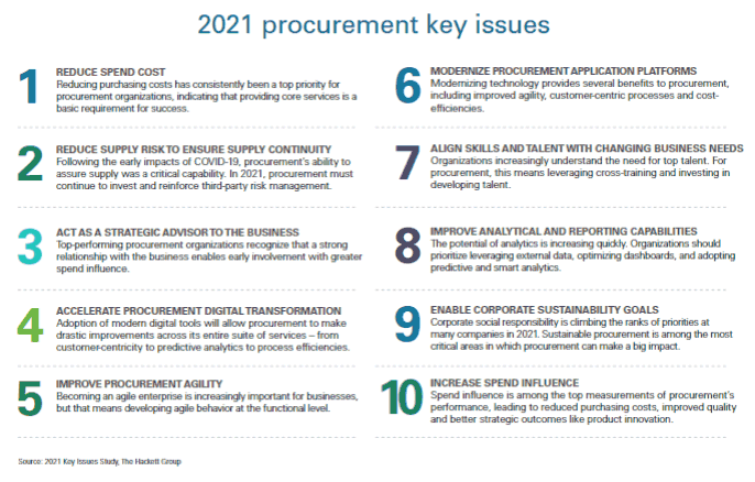 The full Hackett procurement report is available here: 2021 CPO Agenda