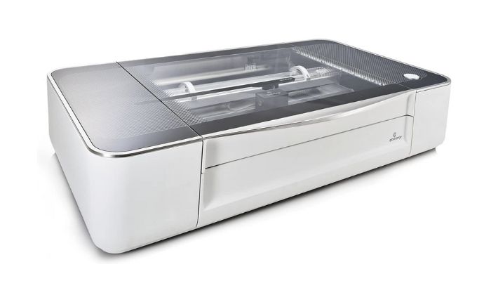 The Glowforge is the most well-known smart laser cutter, and that’s surely thanks to its historic Kickstarter campaign. By raising almost $28 million in just 30 days, the American brand quickly made a name for itself in 2015 and became the reference point for smart and intuitive machines. The manufacturer now offers 3 variations of its machine (Basic, Plus and Pro) allowing for different speeds, laser power, cooling and material access hatch. Using the Proofgrade materials sold by the manufacturer, the cutting profile is automatically configured to simplify user experience. Glowforge machines use web-based software that can be accessed from any internet-connected device and is compatible with many file types such as JPG, PNG, SVG, PDF. Glowforge laser cutters have an internal air extraction system that allows air to be redirected to the outside; if you wish to filter the air beforehand, count on paying $1295 extra.