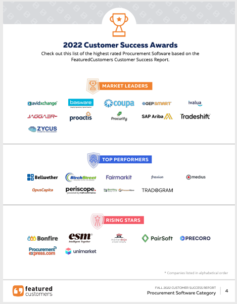The Top Procurement Software Vendors According to the FeaturedCustomers Fall 2022 Customer Success Report Rankings