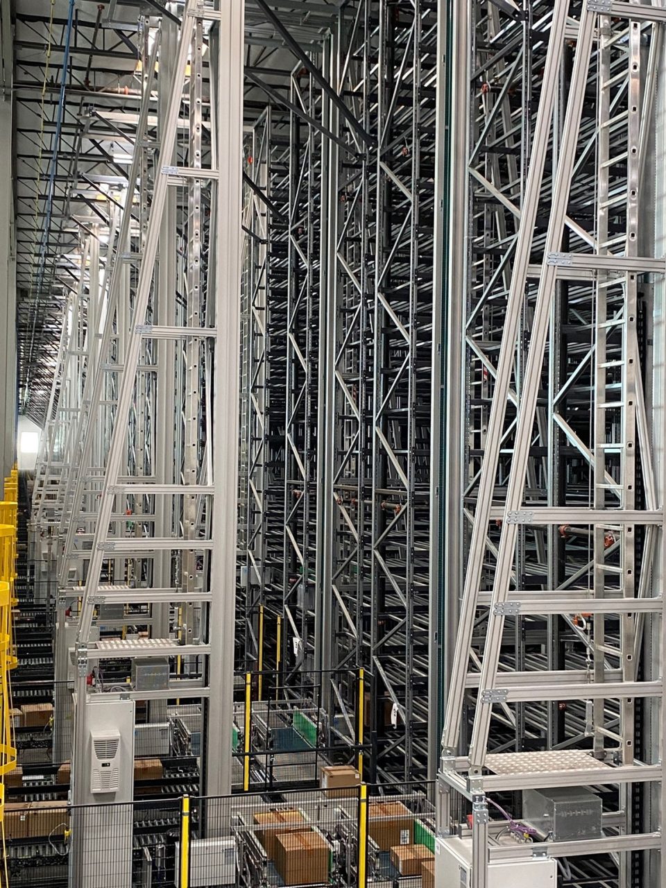 There will be 18 ecommerce (goods-to-person) stations, 24 stations to support ecommerce orders that require value added services, and 72 stations to support the wholesale channel. The conveyor system is a marvel with 20 diverts to ensure the right goods flow to the right station. TGW is their material handling supplier and Manhattan Associates is the warehouse management system supplier.