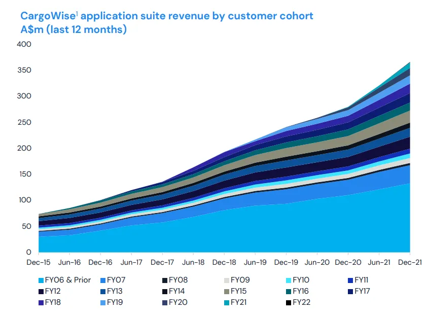 Wisetech has seen an acceleration in revenue growth in 2021 and 2022.