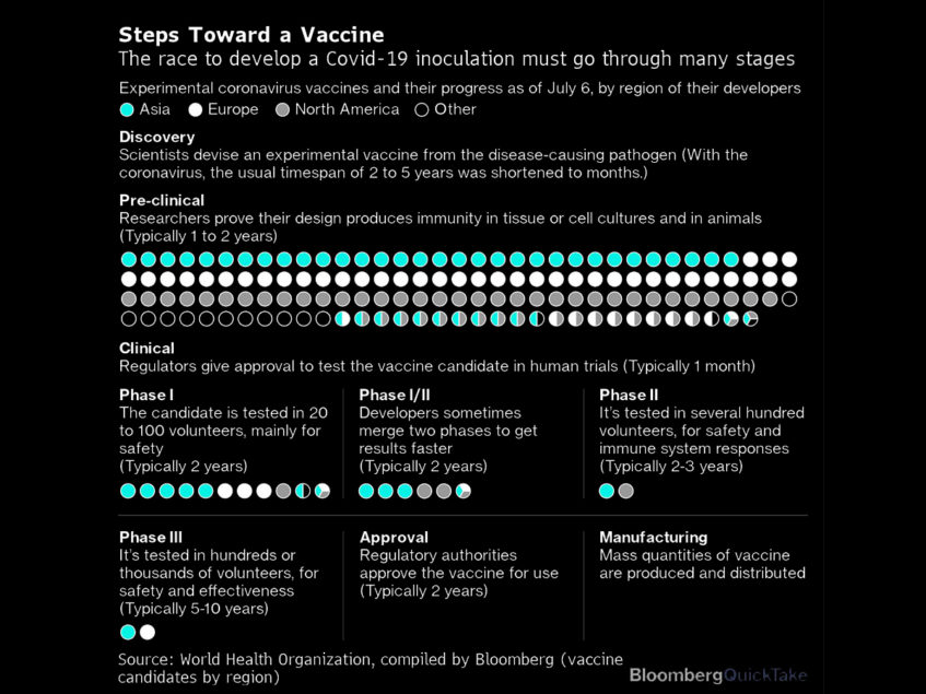There are more than 160 coronavirus vaccines in development, according to the World Health Organization, though only 25 are currently in human studies. The candidates furthest along are now launching late-stage trials, and have ambitions of securing an emergency use authorization from regulators before year end. That could allow for a limited availability of shots for health-care workers and other vulnerable groups.