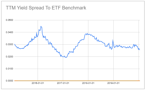 Another attractive aspect of the loan CEF sector is that it generates about 2.5% over and above the underlying sector ETF, which is on the high side across the CEF space.