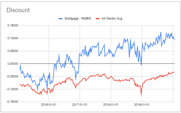 One challenging aspect of the sector has been its tight average discount, which has grown to a premium of 10% on average. However, this is entirely due to the three PIMCO funds.