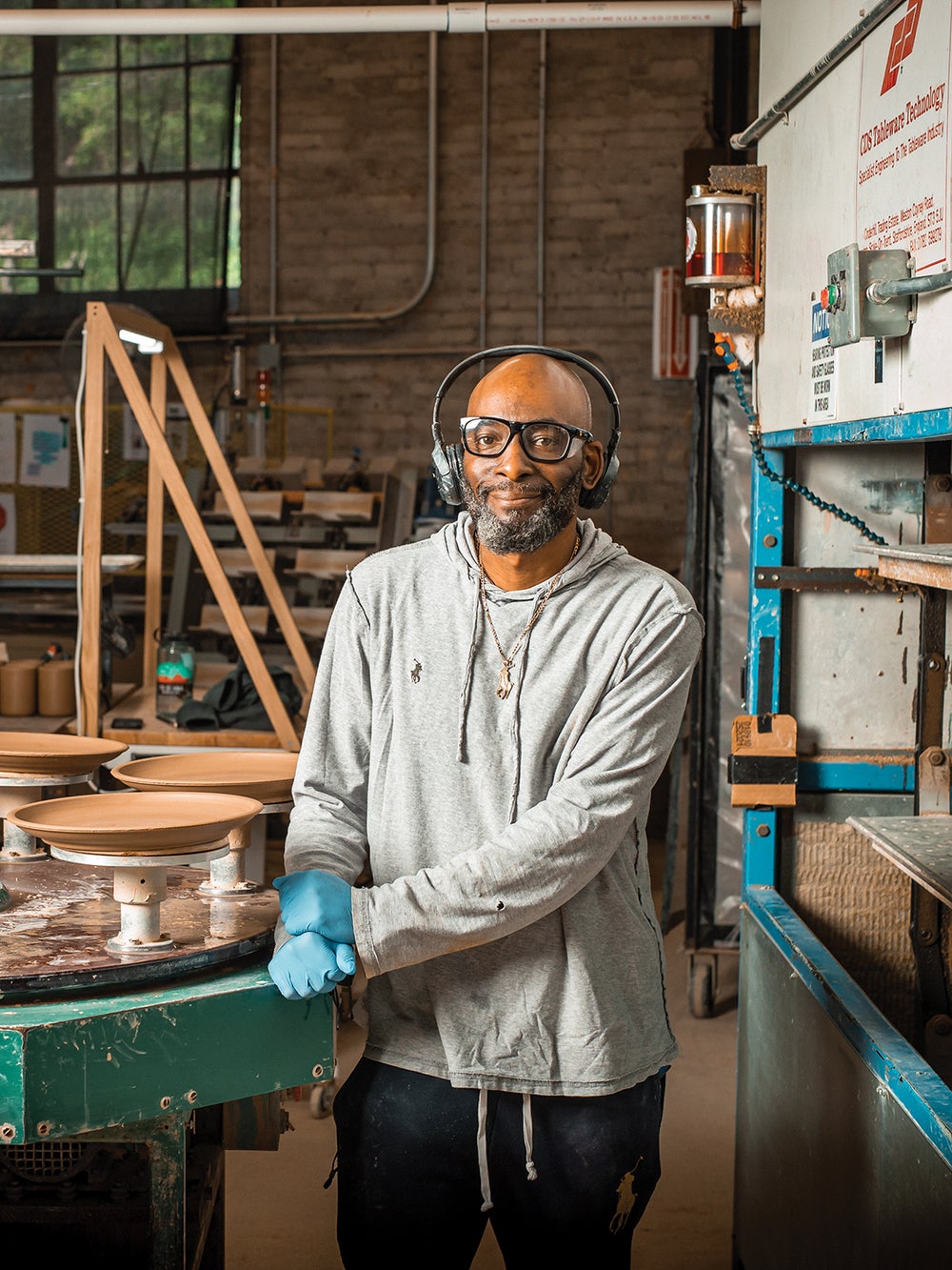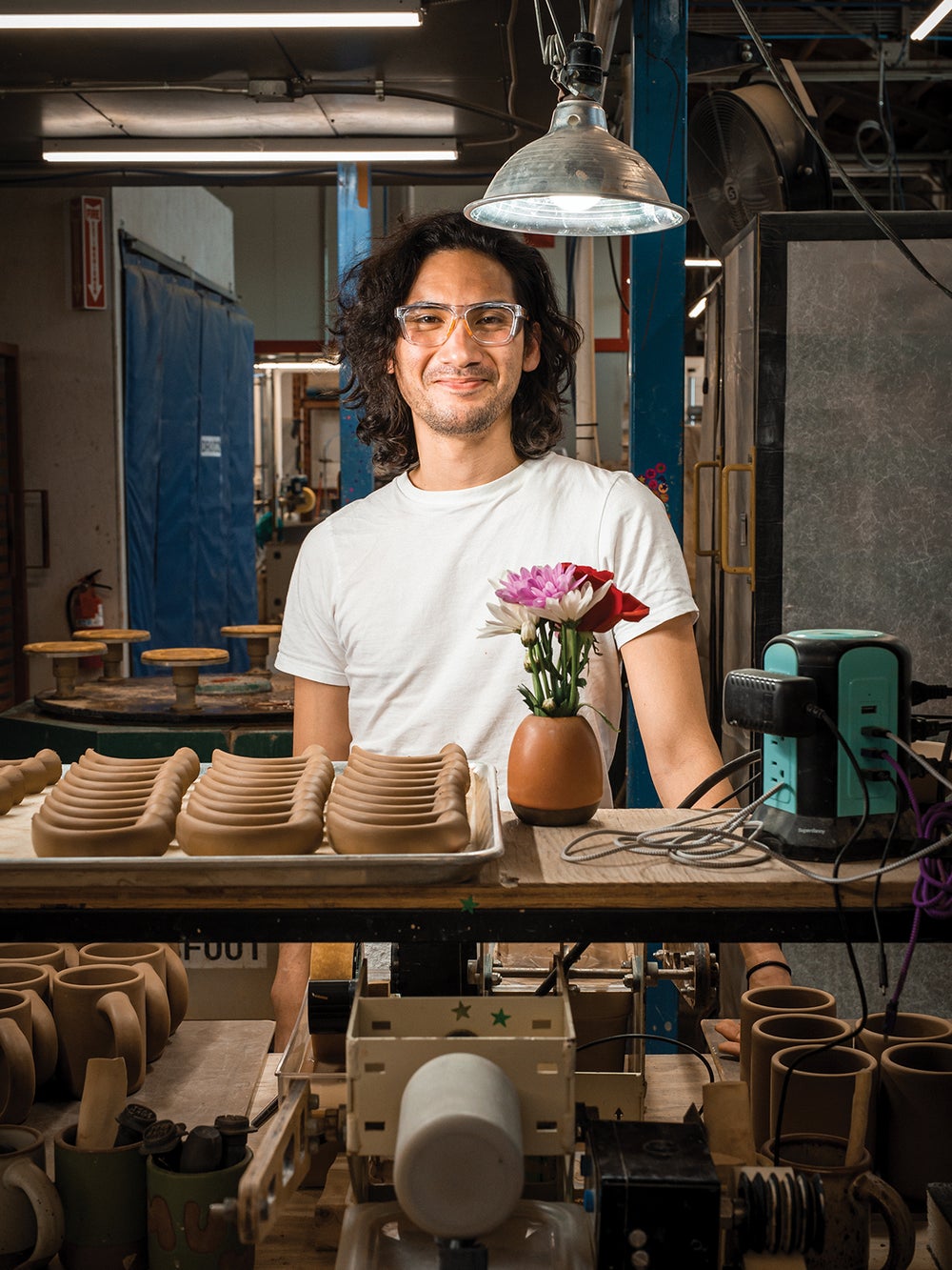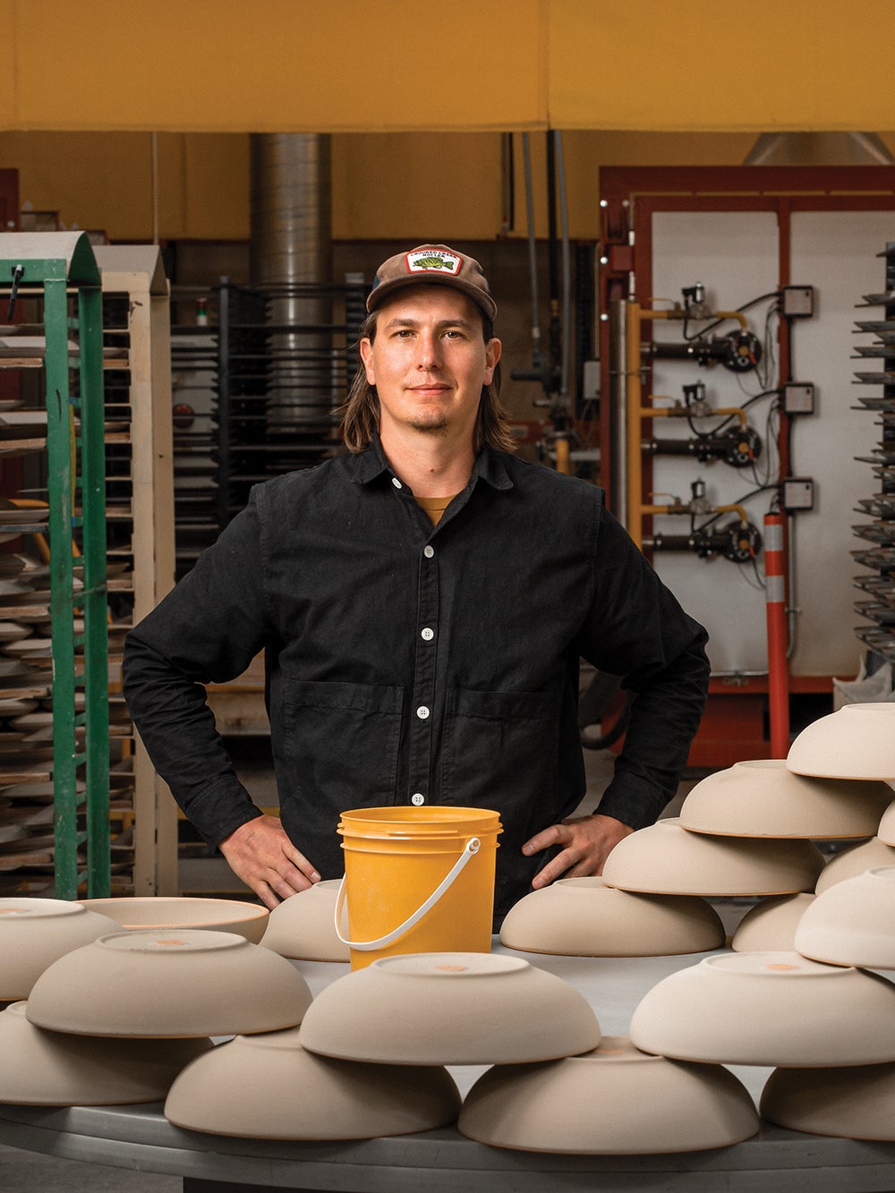 I started working at East Fork at the original site in Marshall, North Carolina, up the hill in updated tobacco barns. I was glazing pots and loading the kiln, cleaning out buckets and sponges under the one-studio water spigot. Making beautiful pots on any scale takes a wild amount of troubleshooting, resilience, and crowdsourcing solutions — doing the most with the least. I’ll never forget how our team moved all our tools and equipment from the Marshall location to a factory closer to Asheville, in U-Haul trucks, like a bunch of buddies helping with a home move.