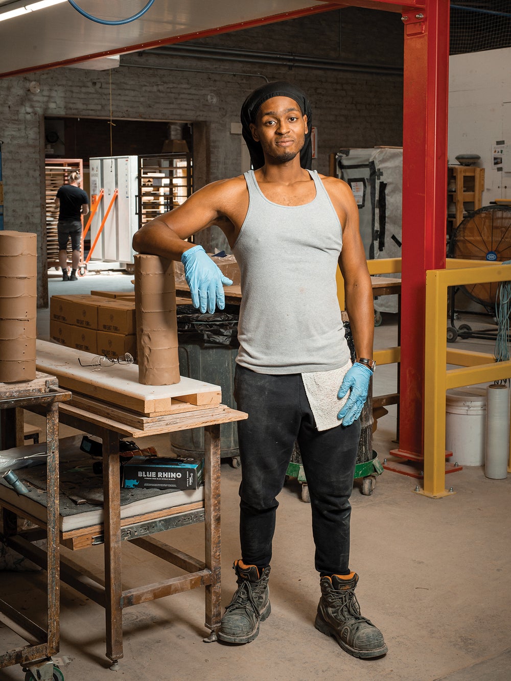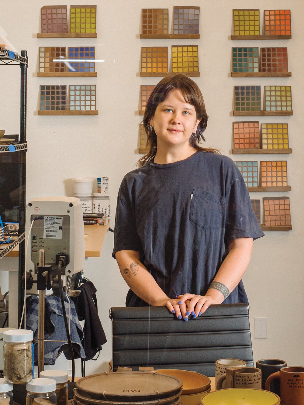 I’d been working in a nursing home for four or five years, making like $10 an hour, so this job was a big financial jump. In my time here I’ve just been trying to figure out my own little path. I worked on the glaze team for a couple years, then I went to forming, then trimming, and now I’m on the roller tool team. I think it’s good to spread your wings and try different things. I’m into graphics, and during the pandemic I came up with an idea that I pitched to Connie and Alex, to do some T-shirts for the company. So that’s on their website right now. It’s called Drip Life x East Fork.