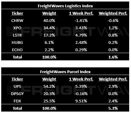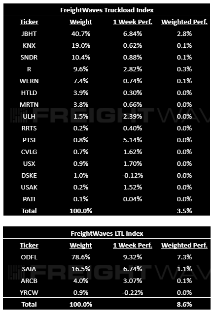 This past week was an outstanding week for our transportation indexes as they rebounded from one of the worst weeks in recent memory. There were numerous strong earnings reports this week. LTL was the best performer this week at 8.6%, while logistics was the worst performer at 1.6%.