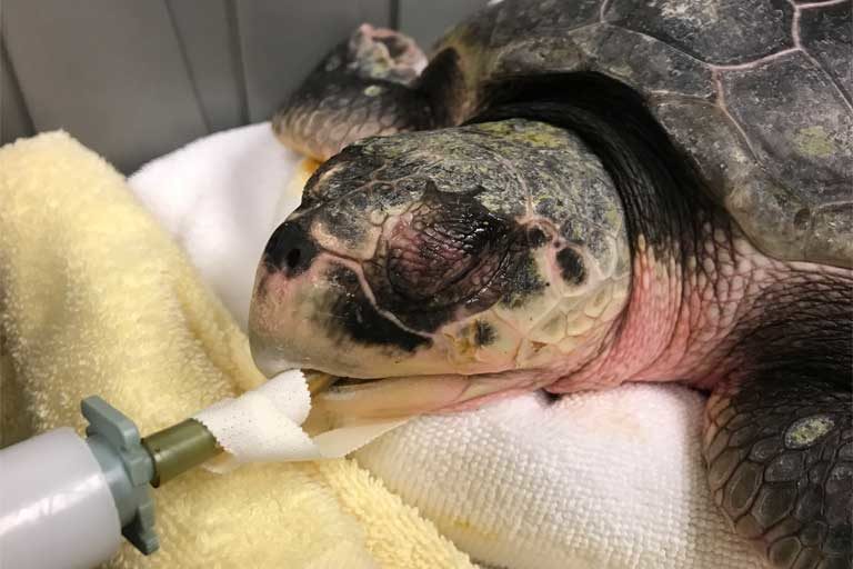 “Early in the season, we typically see the smaller Kemp’s ridley and green turtles. The larger loggerhead turtles will start to wash ashore in December, though we saw our first loggerhead of the season [this year] on Thanksgiving Day,” said Dr. Charles Innis, director of animal health at the Aquarium, in a press release. “Every case is unique, and each turtle receives specific care based on its condition.”