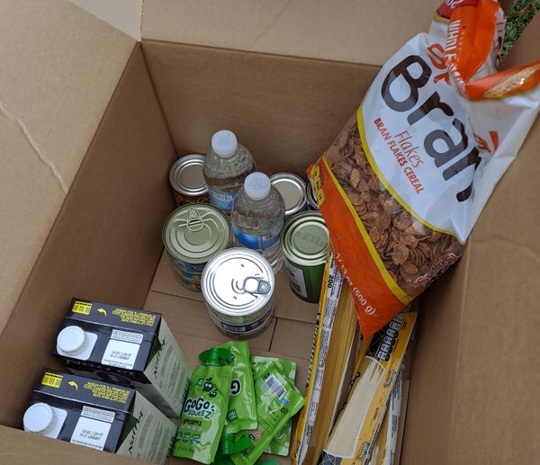 In Toms River, the meal kits that Fulfill delivers vary from week to week in what they contain, but it’s usually a mix of staples that can last a few days. On a recent Friday, the crisis box had three packages of spaghetti, two cans of vegetables, six cans of tuna, four packages of GoGo Squeez applesauce, two quarts of shelf-stable milk, a bag of bran flakes and a few other items. That was supplemented by a box of produce that included celery, potatoes, a head of lettuce, a melon, a cucumber and apples.